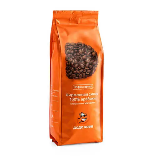 Фирменная смесь кофейных зерен из 100% арабики. Кофейные зерна из Бразилии и Эфиопии обжаренные по специальному рецепту Додо. Идеально подходят для заваривания в домашних условиях