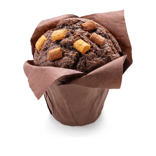 Ну и кекс этот маффин! Он из натурального какао, а внутри — нежная начинка из кубиков белого и молочного шоколада