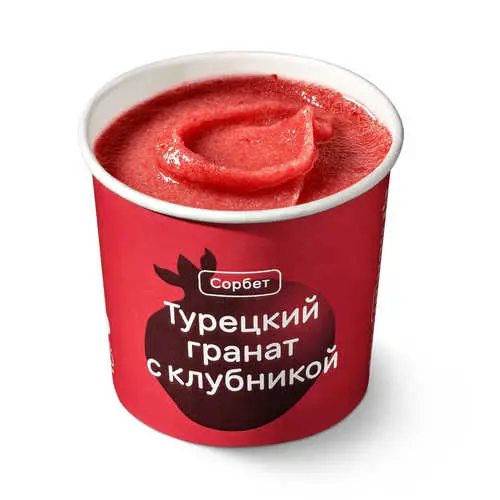 Горячий восток в прохладном десерте. Оцените дуэт граната и сладкой клубники. Название продукта фантазийное и не означает, что продукт содержит гранаты из Турции